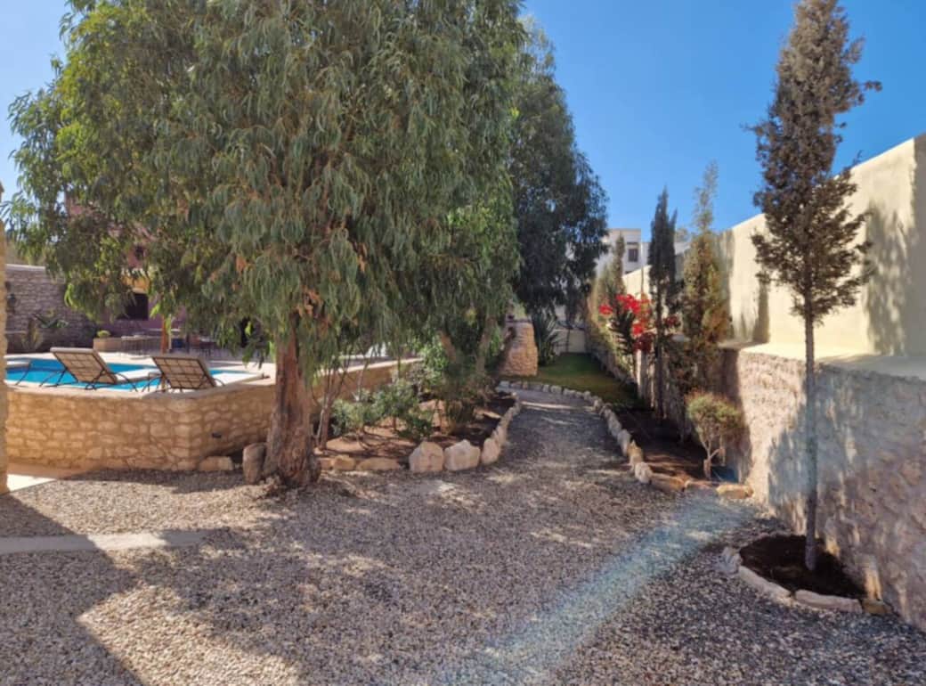 À seulement 10 minutes d'Essaouira, dans un environnement serein, vous disposez d'une terrasse avec piscine, bains de soleil, barbecue et deux salons pour vos moments de détente.